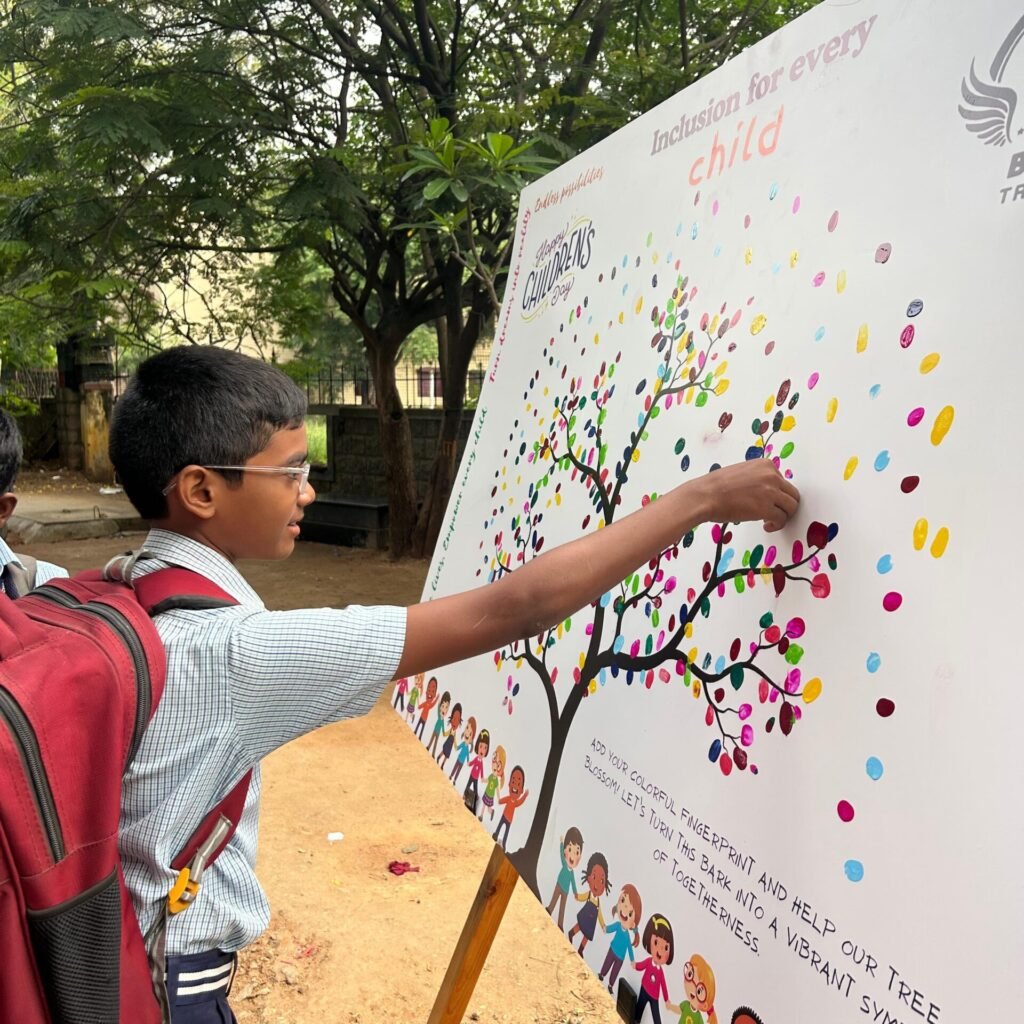 BTG Trust marked Children’s Day 2024 with a unique Fingerprint Awareness Campaign at Race Course, Coimbatore, aimed at promoting child safety and community responsibility. The event engaged over 500 participants, highlighting the importance of creating a secure environment for every child. A central feature of the campaign was the Fingerprint Pledge Wall, where individuals placed colorful fingerprints as a symbolic commitment to protecting children. Informational pamphlets on child safety and BTG Trust’s welfare initiatives were distributed, while volunteers facilitated interactive sessions on online safety, open communication, and recognizing signs of abuse. Children enjoyed storytelling sessions, while parents and guardians actively participated in Q&A discussions. The event reinforced collective awareness, community action, and BTG Trust’s mission to safeguard childhood.