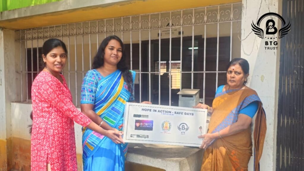 On February 5, 2025, BTG Trust, under its “HopeInAction – #SafeDays” initiative, installed a sanitary napkin vending machine at Corporation Girls High School, Sidhapudur, benefiting 279 students. Supported by Exterro and implemented in collaboration with the Tamil Nadu Education Department, the initiative ensures regular access to menstrual hygiene products and includes awareness sessions on menstrual health and hygiene. This effort empowers young girls with knowledge, promotes dignity, and creates a supportive school environment for managing menstrual health.